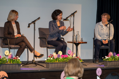 Nach einem Grußwort unserer Präsidentin des LandesLandfrauenVerbandes Schleswig-Holstein Frau Ulrike Röhr, hörten wir einen Kurzvortrag unserer Landwirtschaftskammer Präsidentin. Frau Volquardsen nahm nach ihrer Rede, in der sie ihre Aufgaben als solche darstellte, auf der Bühne Platz wie auch die Vorsitzende des Referates Ernährung der Verbraucherzentrale SH Frau Benda und Frau Schwarten als Vorsitzende des Verbandes der Teichwirte und Binnenfischerei und als Vorsitzende des Umweltausschuss der LW-Kammer SH. Unser hochkarätiges Podium stellte sich nun den Fragen der interessierten Zuhörer und es wurde lebhaft diskutiert.
